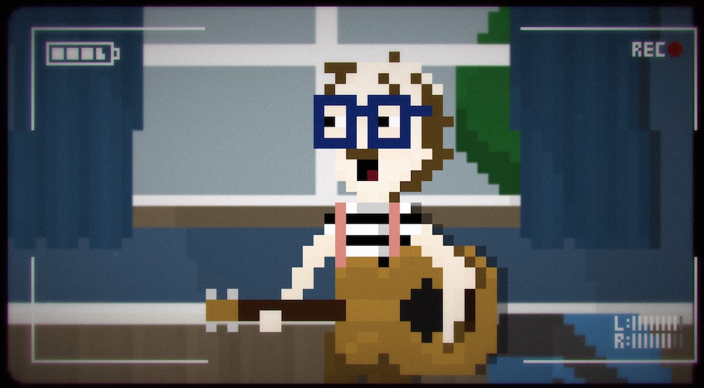 How to cope with boredom and loneliness is a 2D pixelated interactive story. The player character, Nigel Wimble, is making a documentary on Harold Fletcher. Harold has been grounded by his mother for 30 years, and it’s up to the player to shed light on Harold’s life by asking it about certain objects in his room. Three items are then selected, a short documentary is filmed, and the goal is to receive a perfect review. Clicking on an item will prompt Harold and his mother to talk about it. Sometimes an item will reveal a sad story, like how a drawing of two fishes represents Harold and his father who passed away. Other items, like a pile of paper will show that Harold likes to write erotic novels set in space. Learning the meaning of all the items takes maybe 5 to 10 minutes, the rest of the time is spent watching the documentaries with different levels of success until the player lands a perfect score. The game starts being repetitive very quickly. All three items in the final documentary are given unique score, and getting three 10/10s is just a matter of trial and error. This is offset by the fact that each item has a unique and interesting story behind it, and the player can skip dialogue and parts of the documentary that have already been heard. Another problem, is that when Harold is asked about an object in his room, he’ll say what the object means to him so that the player can decide if it’s a good documentary subject. However, the description given in the final interview can vary wildly, making it feel like a waste of time. But hey, that’s what the game is about; wasting time.. Right?
